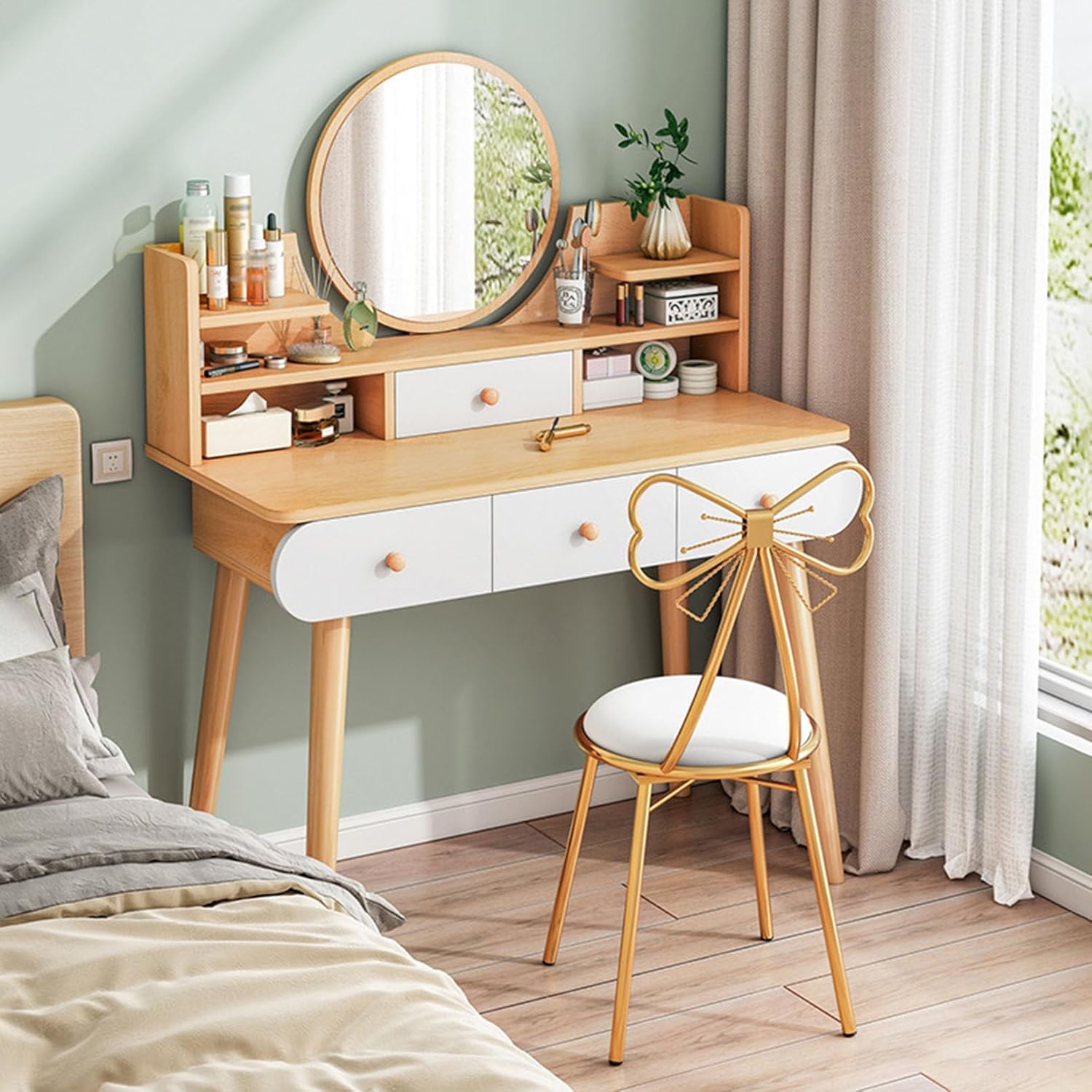 The vanity desk features 3 large drawers and 1 small drawer for organized storage.