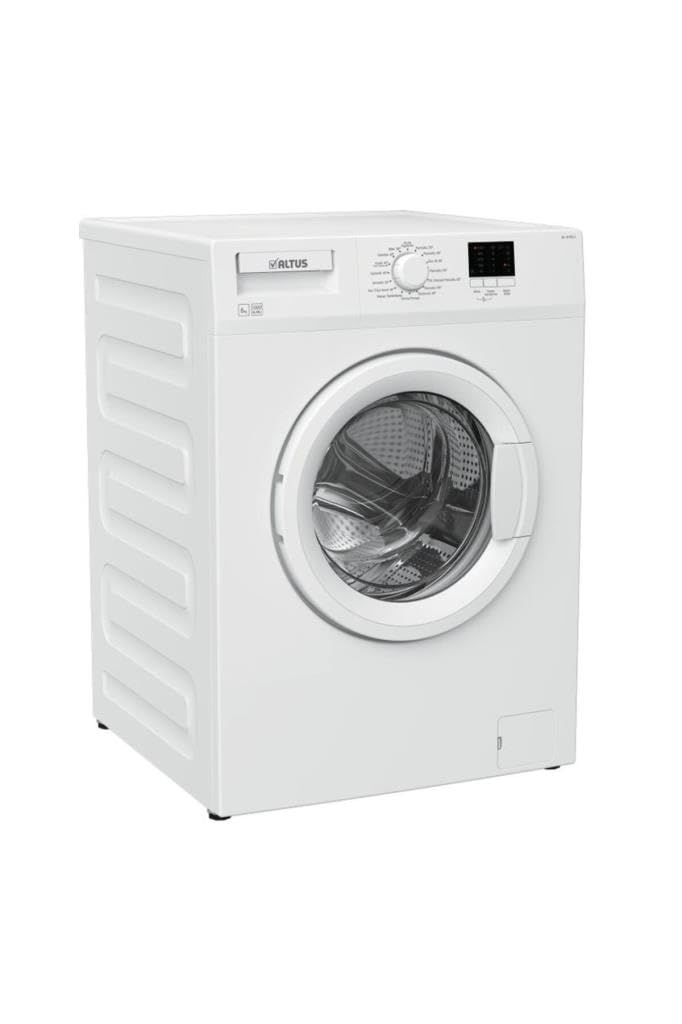 Figure 1: Front view of the Genel ALTUS AL 6103 L washing machine. This image shows the appliance's control panel, detergent drawer, and front-loading door.