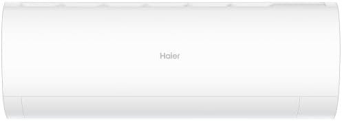 Image: Front view of the Haier indoor air conditioner unit. This shows the sleek, white design of the unit that will be mounted inside your room.