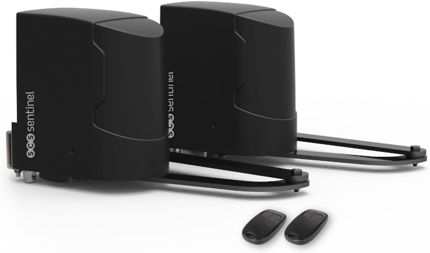 Image 1.1: The SCS Sentinel SimplyOpen 2 articulated arm gate openers with two remote controls.
