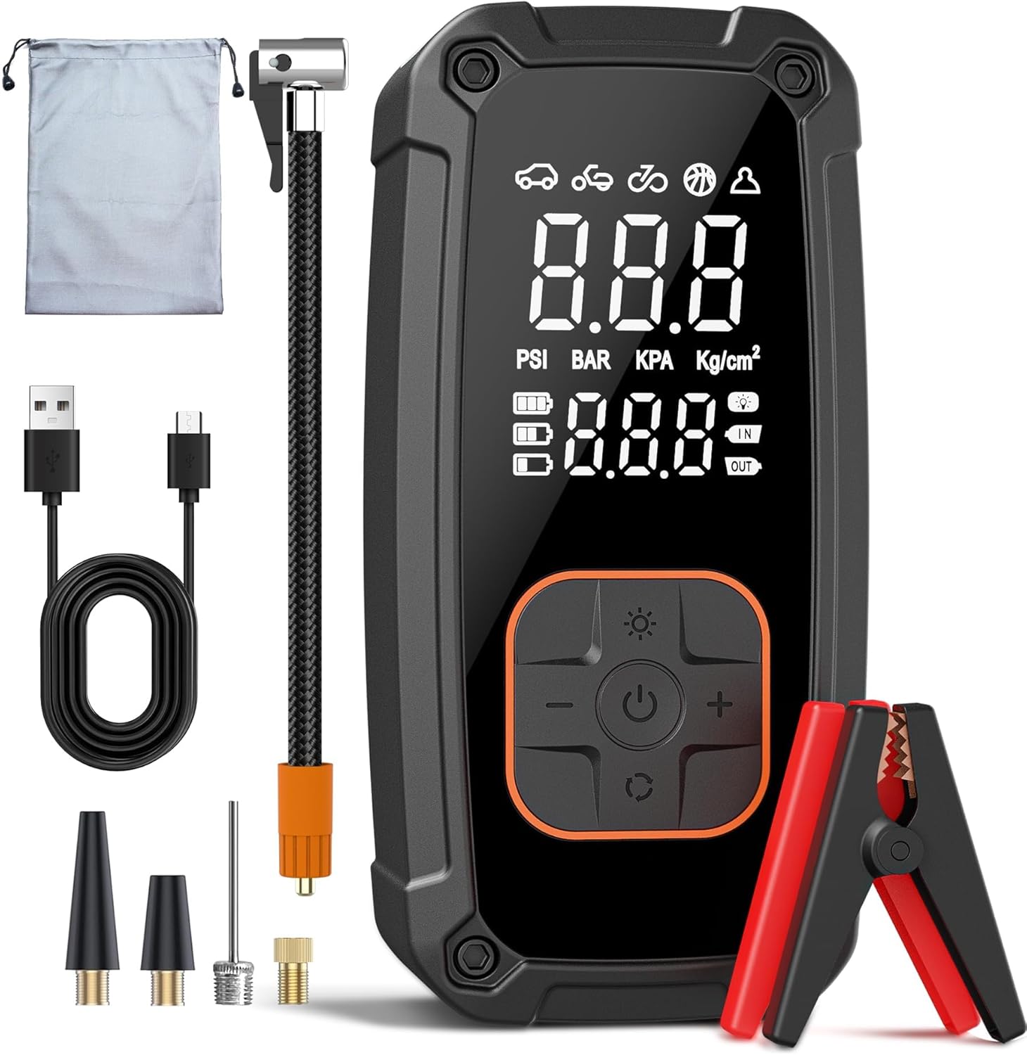 - Accessory Inspection: Regularly check the inflation hose, nozzles, and jump starter clamps for any signs of wear or damage. Replace if necessary.