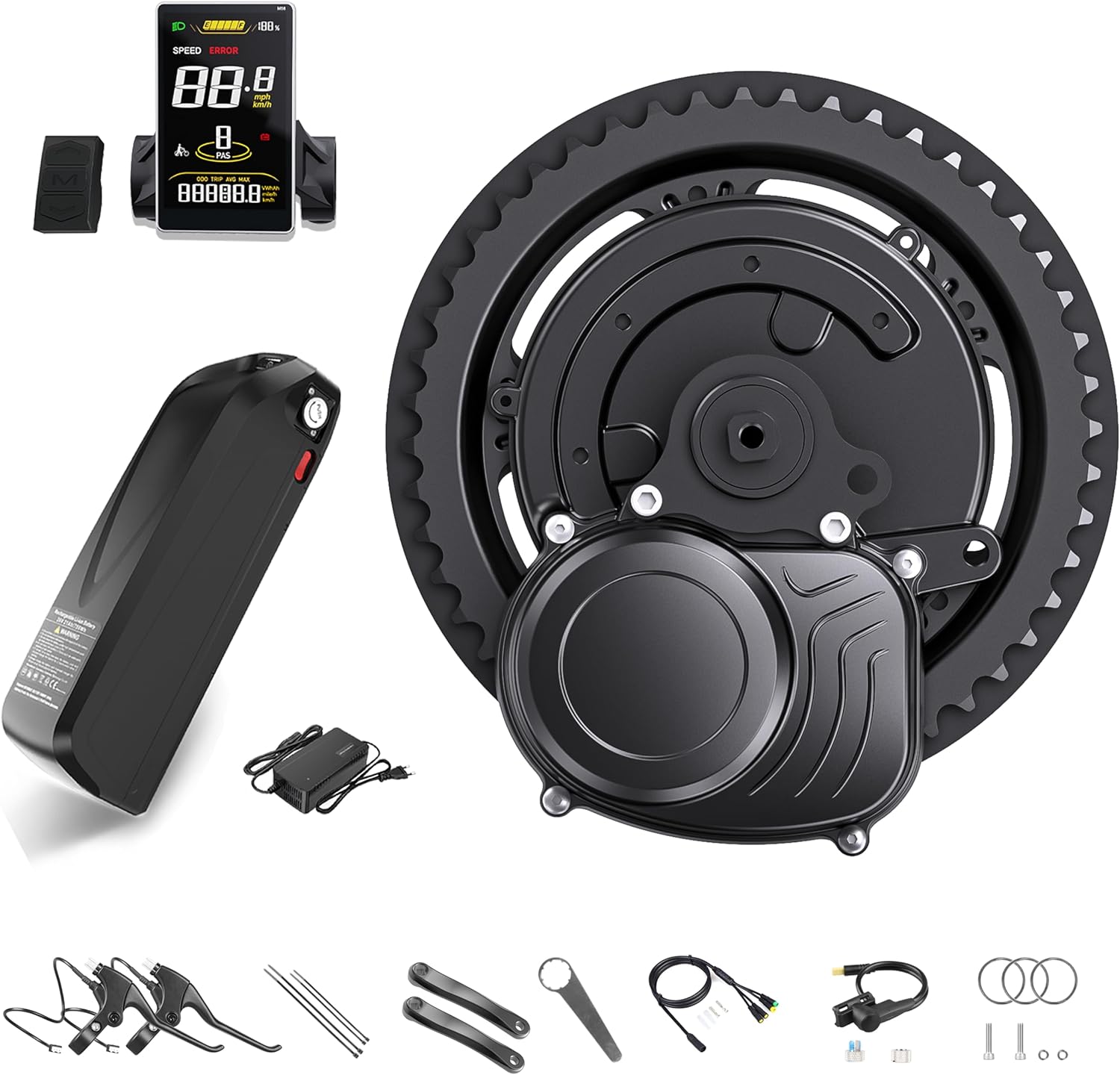 The Varstrom TSDZ2B 48V 500W Mid Drive Electric Bike Conversion Kit typically includes the following components: