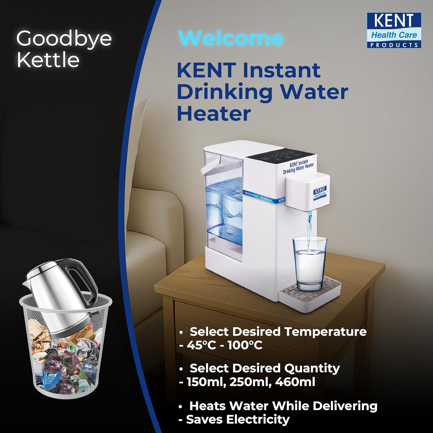 Image: The KENT Instant Drinking Water Heater offers a modern alternative to traditional kettles for instant hot water needs.