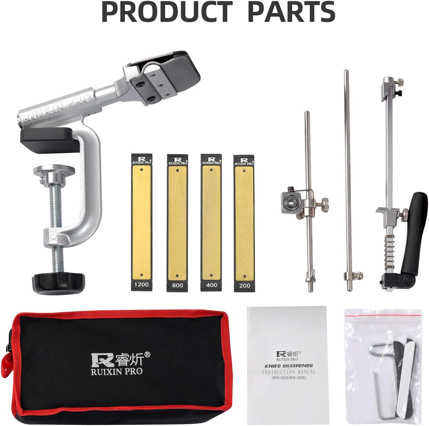 Image: All components included in the RX-008 Professional Knife Sharpener package.