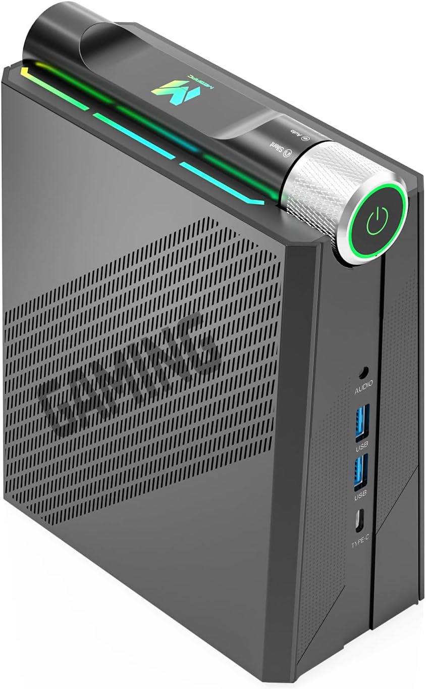 Image: The MegaPC Mini Gaming Desktop showcasing its dynamic RGB lighting effects.