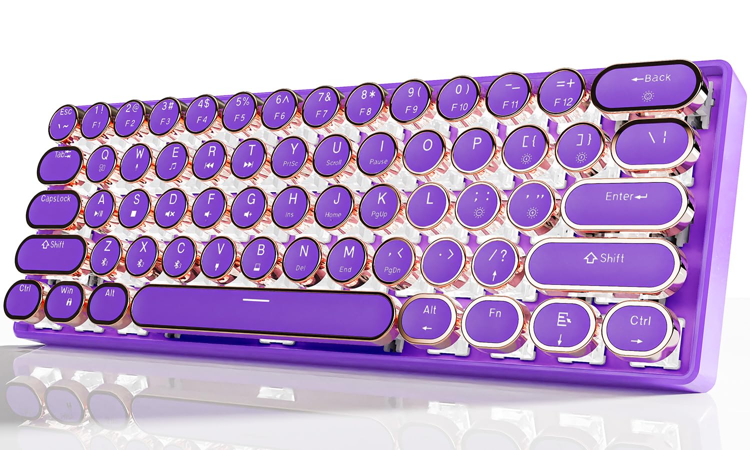 Image 1.1: EWEADN G61 Wireless Mechanical Typewriter Keyboard in purple, showcasing its compact design and round keycaps.