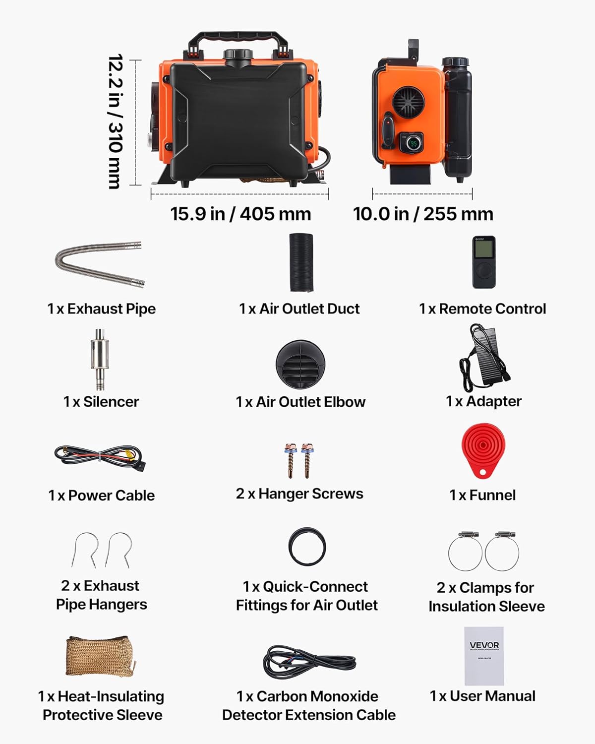 The VEVOR 8KW Portable Diesel Air Heater comes with the following components: