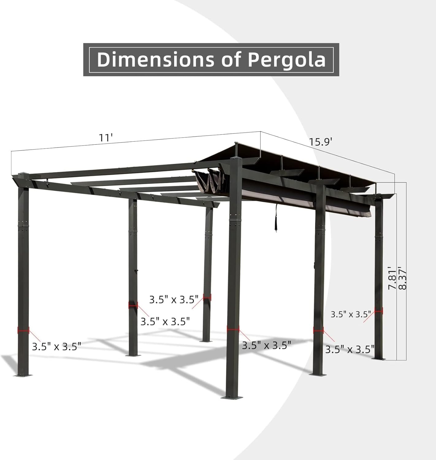 Thank you for choosing the LLS 11' x 16' Outdoor Retractable Pergola. This manual provides essential information for the safe assembly, operation, and maintenance of your new pergola. Please read this manual thoroughly before installation and retain it for future reference. Proper installation and care will ensure the longevity and optimal performance of your product.