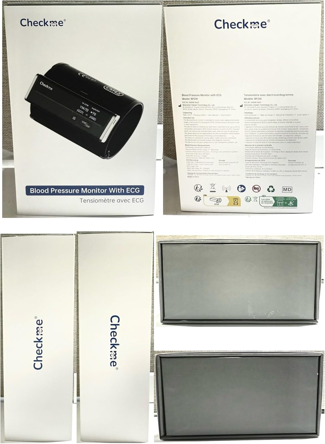 Image: Checkme BP2 product packaging, illustrating the device box and its contents.