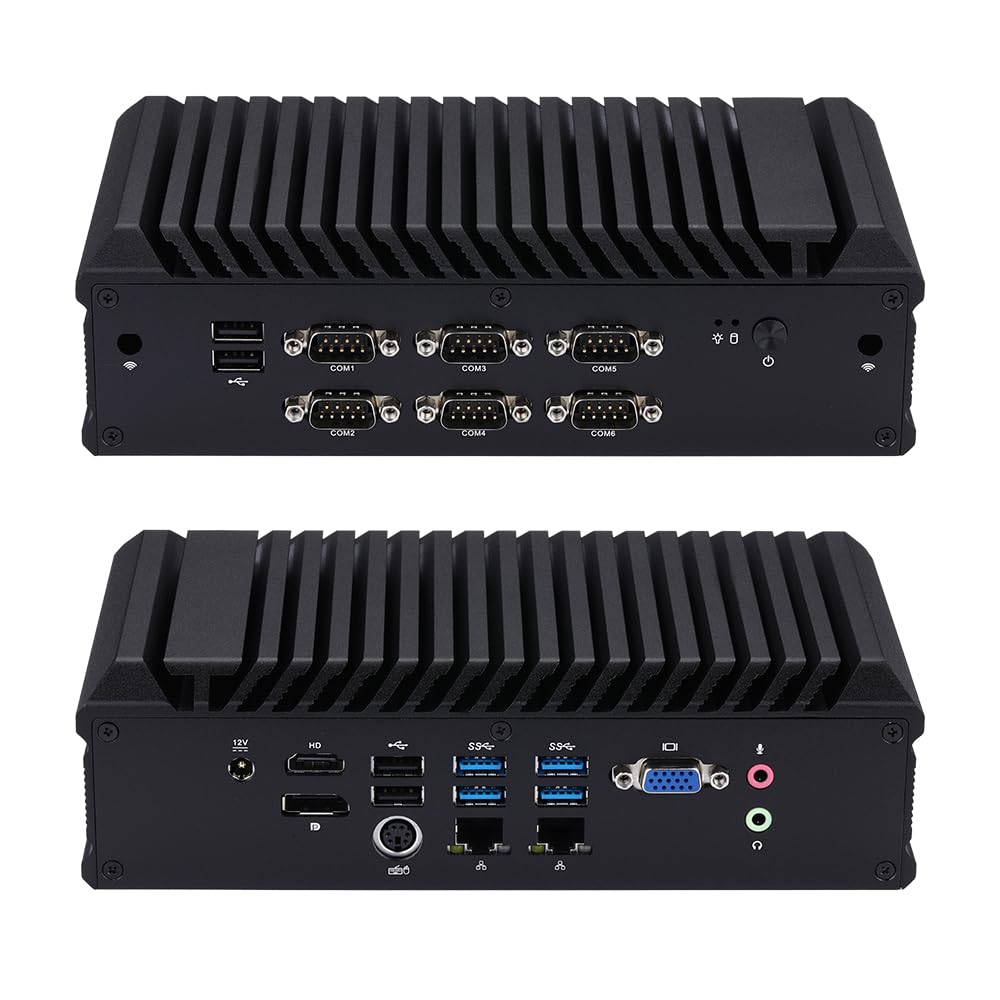 The Qotom Q1052X is a compact and robust fanless mini PC. Its design prioritizes durability and silent operation, making it suitable for industrial, commercial, and home office applications. It features a comprehensive set of ports for connectivity and display output.
