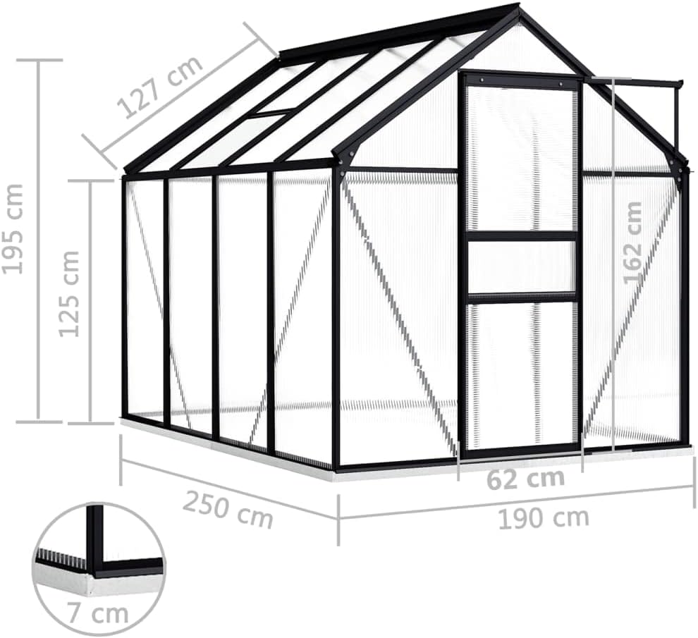 This manual provides essential instructions for the assembly, operation, and maintenance of your KCCLVER Anthracite Aluminum Greenhouse. Designed for hobby gardening, this spacious greenhouse offers a protected environment for your plants, shielding them from adverse weather conditions. Please read this manual thoroughly before assembly and use to ensure safe and efficient operation.