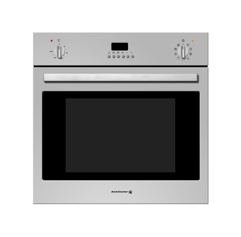 Your Kelvinator oven features an intuitive control panel with an LED display and rotary knobs for function and temperature selection. It offers 9 distinct cooking functions.