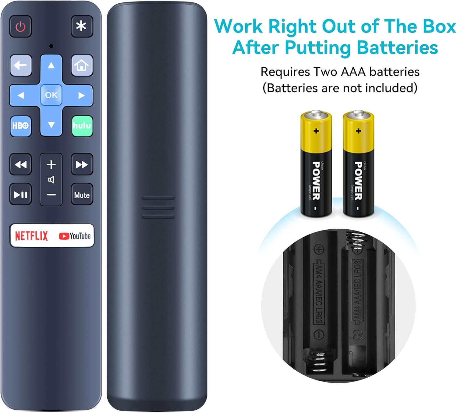 - Dedicated App Buttons (Netflix, YouTube, HBO, Hulu): Provides direct access to these streaming applications.