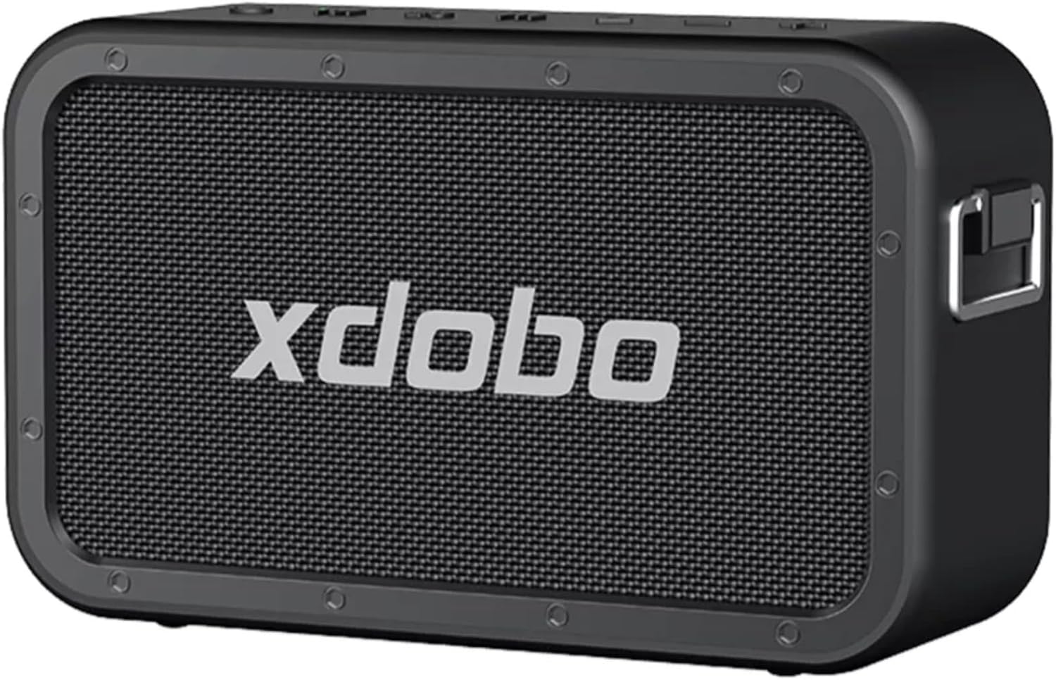 Figure 4.1: Front view of the XDOBO 1983 MAX speaker. This image displays the speaker's front grille with the XDOBO brand name prominently displayed, highlighting its robust and sleek design.