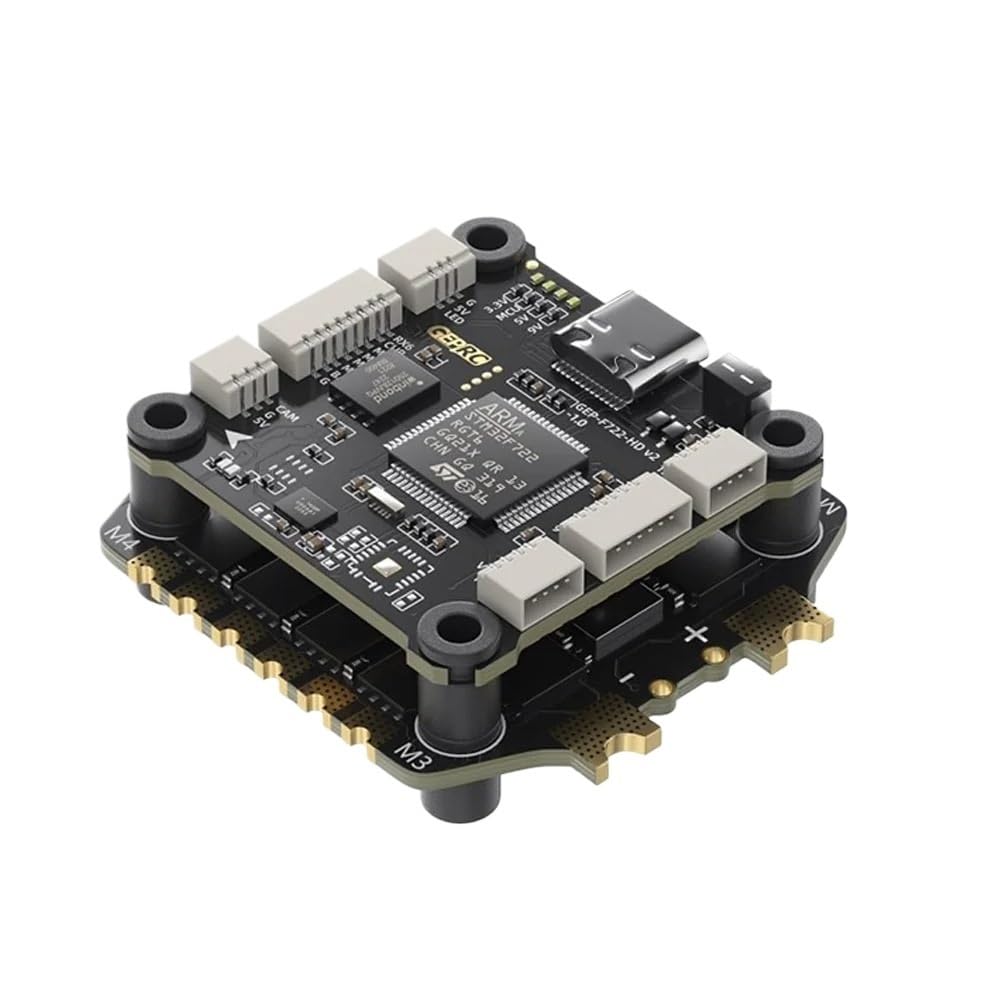 The flight controller comes pre-flashed with BetaFlight firmware. Connect the flight controller to your computer via the USB Type-C port. Use the BetaFlight Configurator software to update the firmware to the latest version (target: GEPRCF722) and configure all settings, including PID tuning, OSD elements, receiver protocols, and motor directions. Ensure all settings are correctly applied before attempting flight.