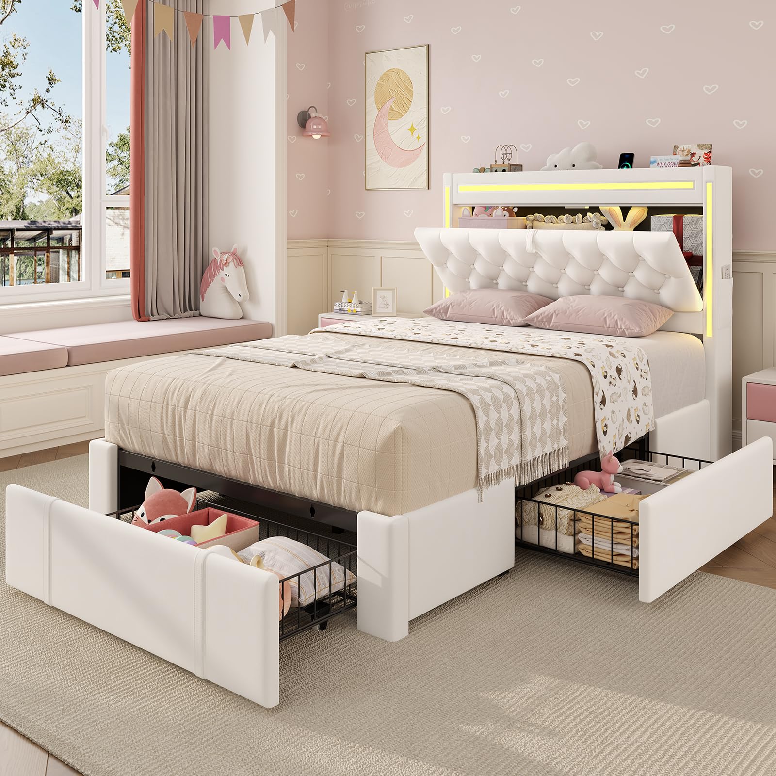 | Special Features | Charging Station, Hidden Storage Headboard, RGB LED Lights, Storage Drawers, Storage Shelf, Side Pockets |