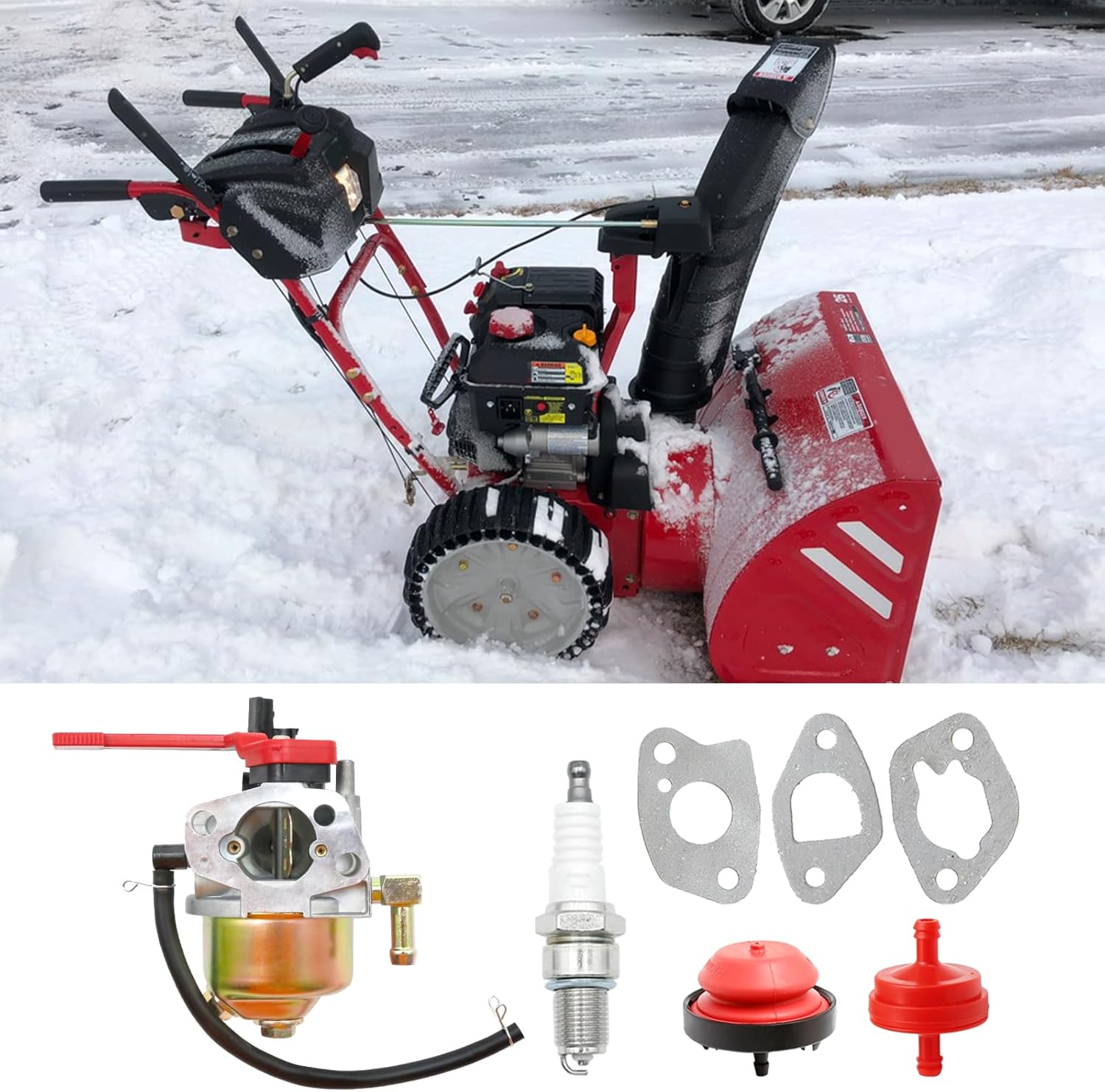 Figure 2: Carburetor kit positioned for installation on a snow blower.