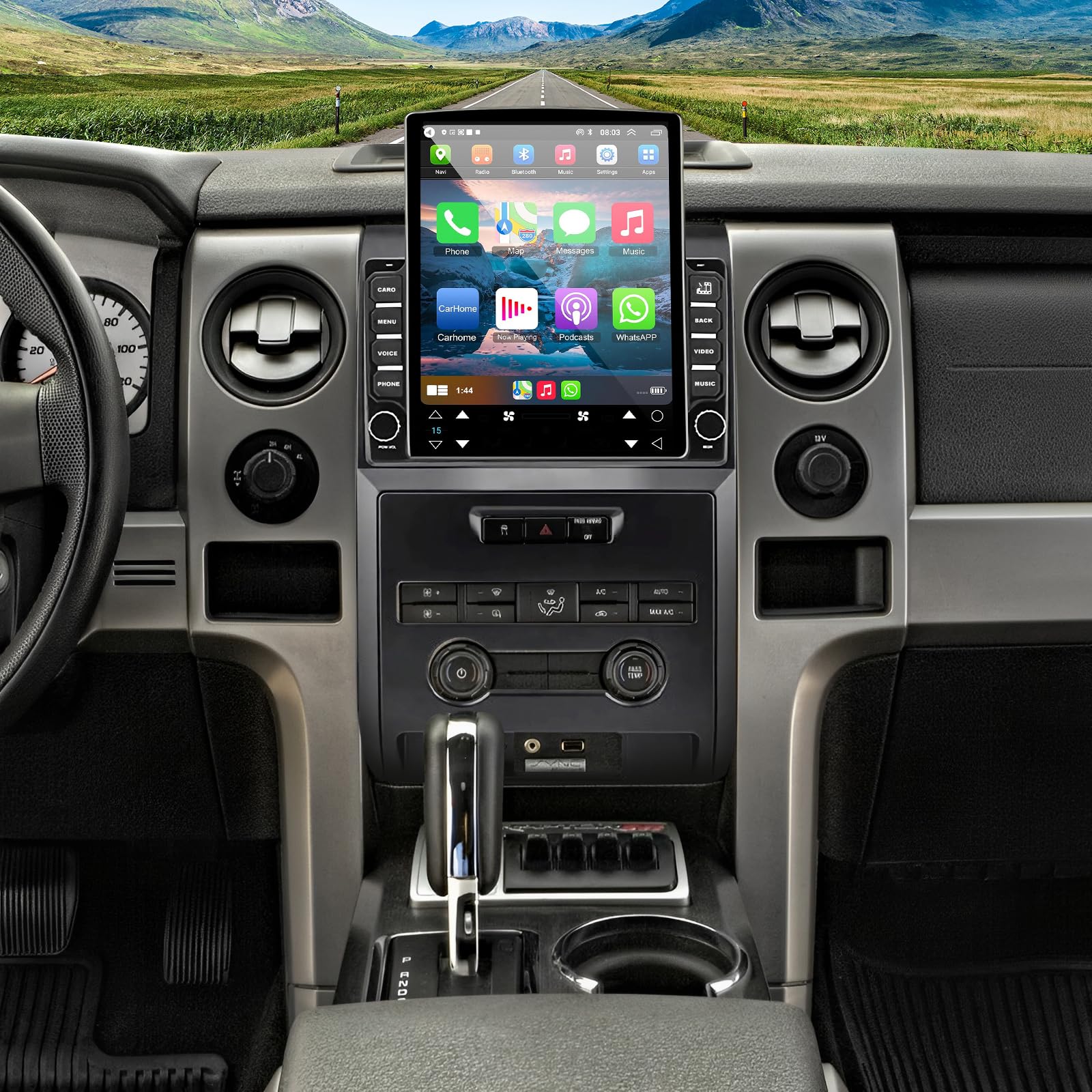 Image: The Dfuorty 9.7 inch Android 13 Car Stereo seamlessly integrated into a Ford F-150 dashboard.