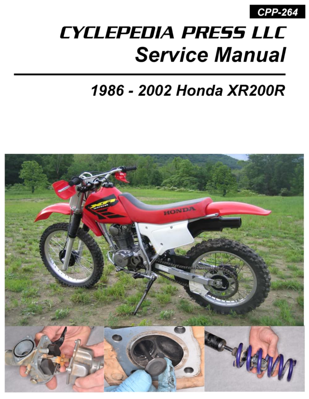 The manual covers the following model years: 1986, 1987, 1988, 1989, 1990, 1991, 1992, 1993, 1994, 1995, 1996, 1997, 1998, 1999, 2000, 2001, and 2002 Honda XR200R motorcycles.