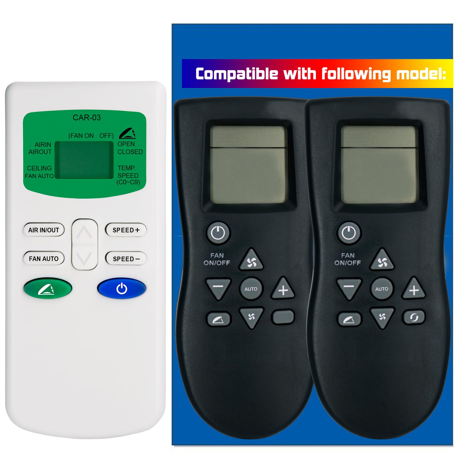 The GAIGAICHONG Replacement Remote Control is an infrared device engineered to operate Maxxair MaxxFan Deluxe Roof Vent Fans. It features a compact design and intuitive button layout for convenient control of your fan's functions.