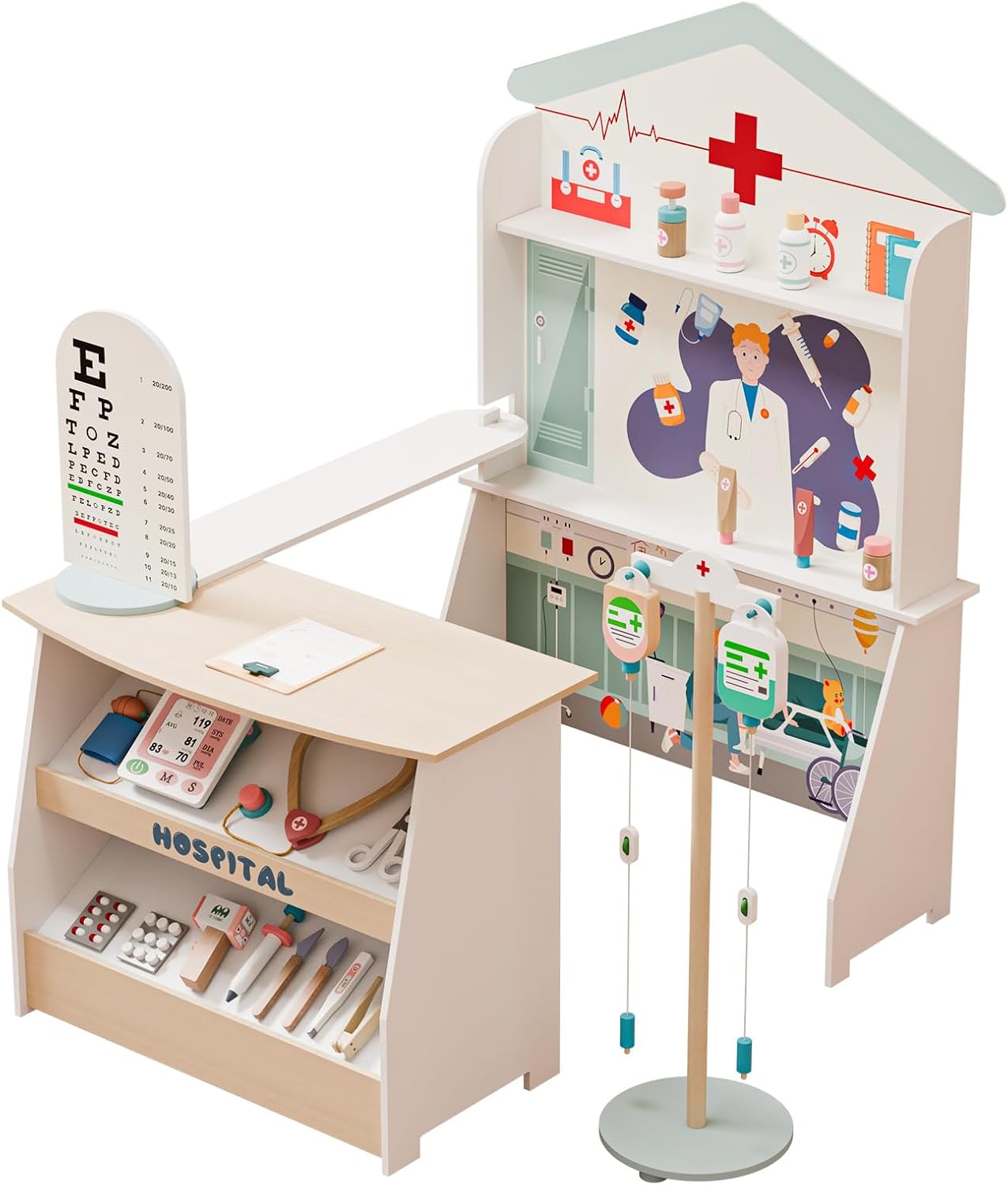 The JOYMOR Wooden Pretend Play Hospital Office encourages open-ended imaginative play. Here are some suggestions for engaging play scenarios: