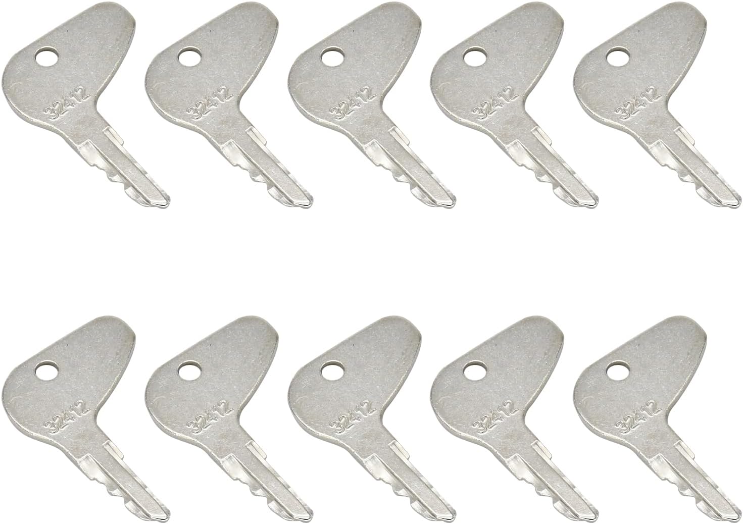 The Tendparts H32412 ignition keys are precision-cut metal keys designed to operate the ignition systems of compatible tractor models. Each key is stamped with "32412" for easy identification.