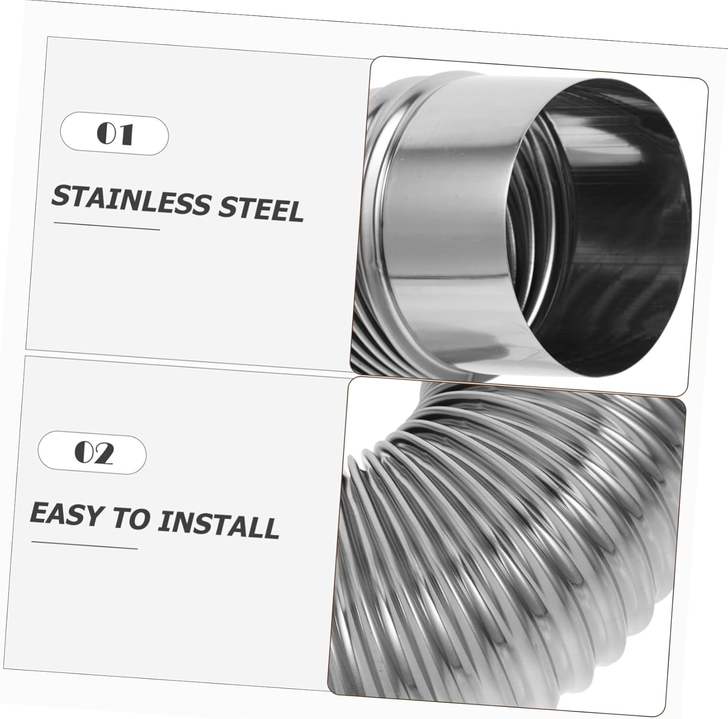 This image highlights two key features: the durable stainless steel material and the ease of installation, showcasing the pipe's construction and user-friendly design.