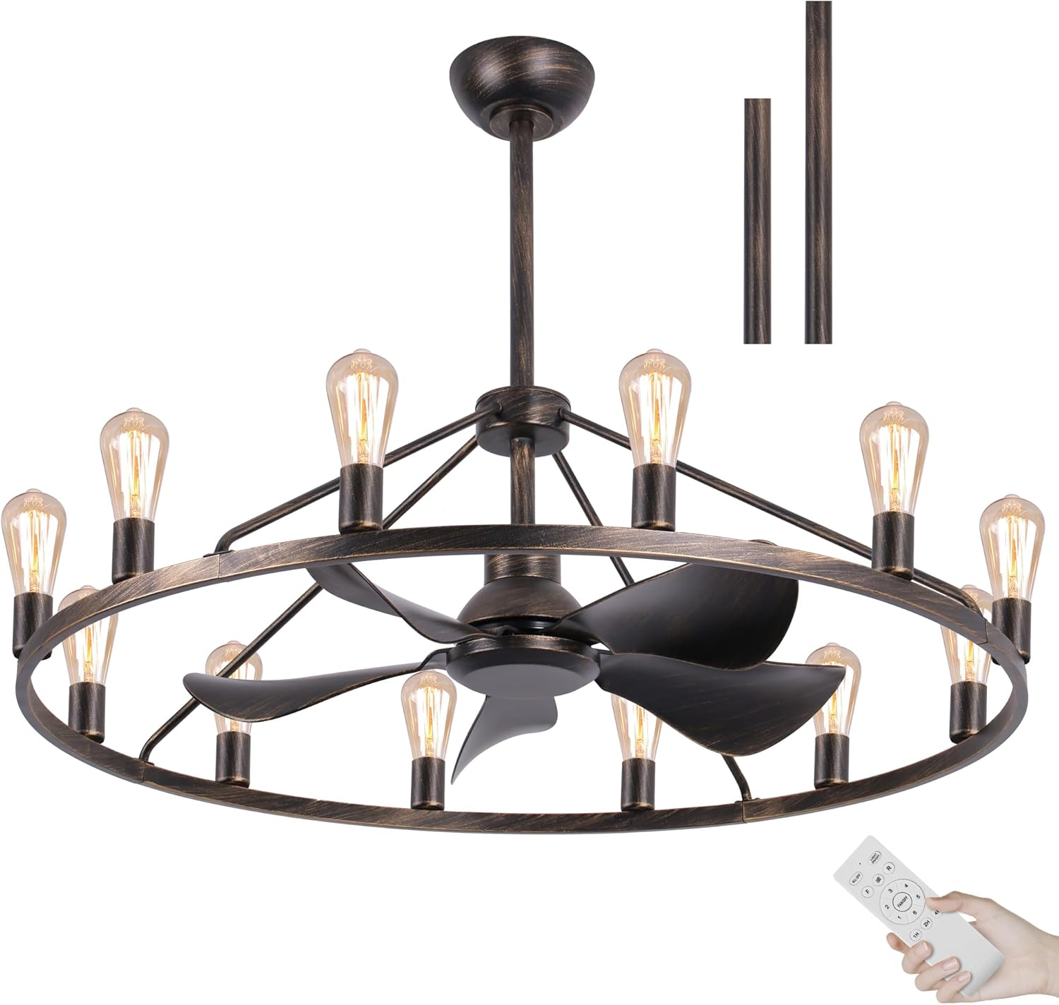 - Ceiling Fan Assembly (Wagon Wheel Chandelier with integrated fan motor and blades)