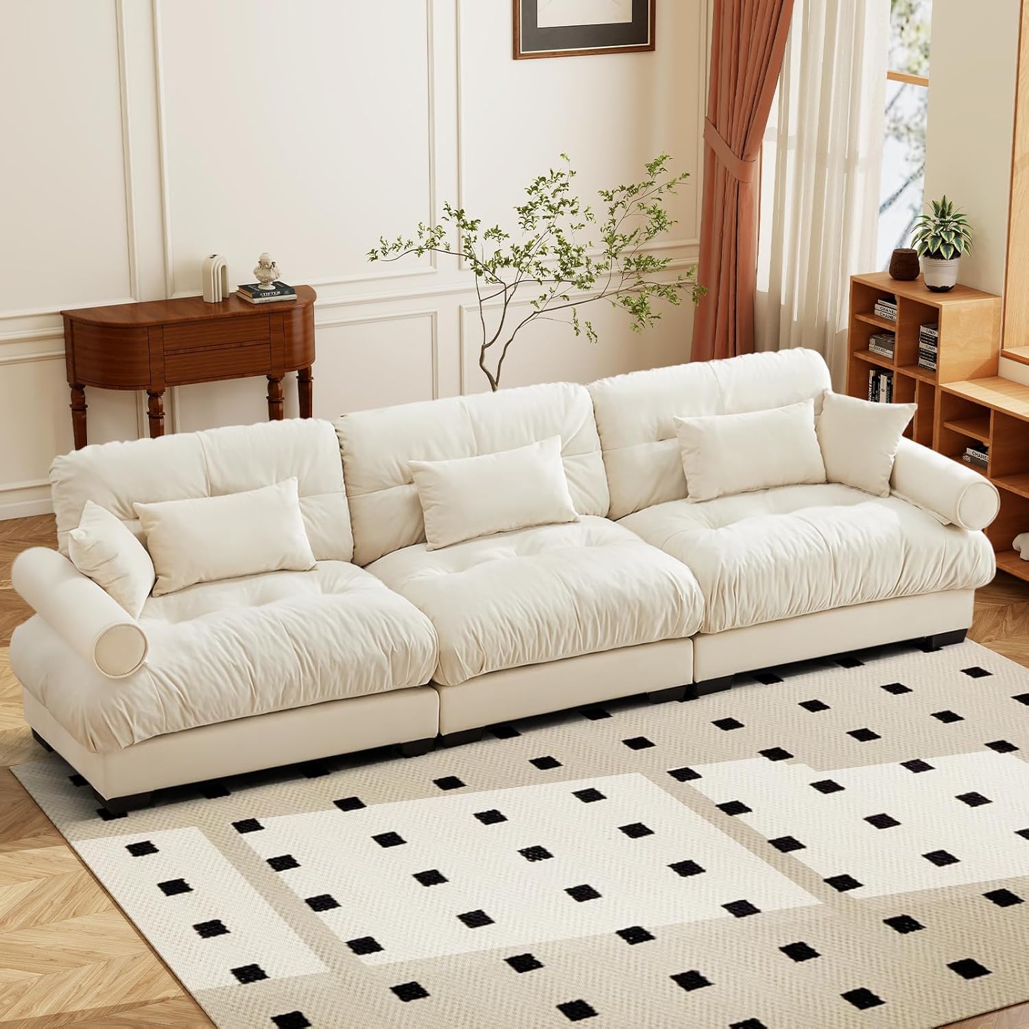 The SoarFlash 130” Sectional Sofa is a modular 3-seat couch designed for comfort and flexibility. It features dual-layer high-resilience foam for support and velvet upholstery for a soft feel. The modular design allows for various configurations, adapting to different living spaces and needs. The sofa is constructed with a sturdy hardwood frame.