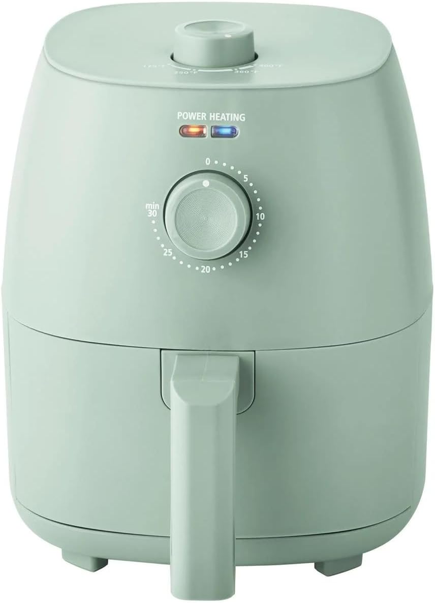 Figure 1: Front view of the Mainstays 2.2 qt Air Fryer in Sage Green, showing the main unit with the handle and control dials.