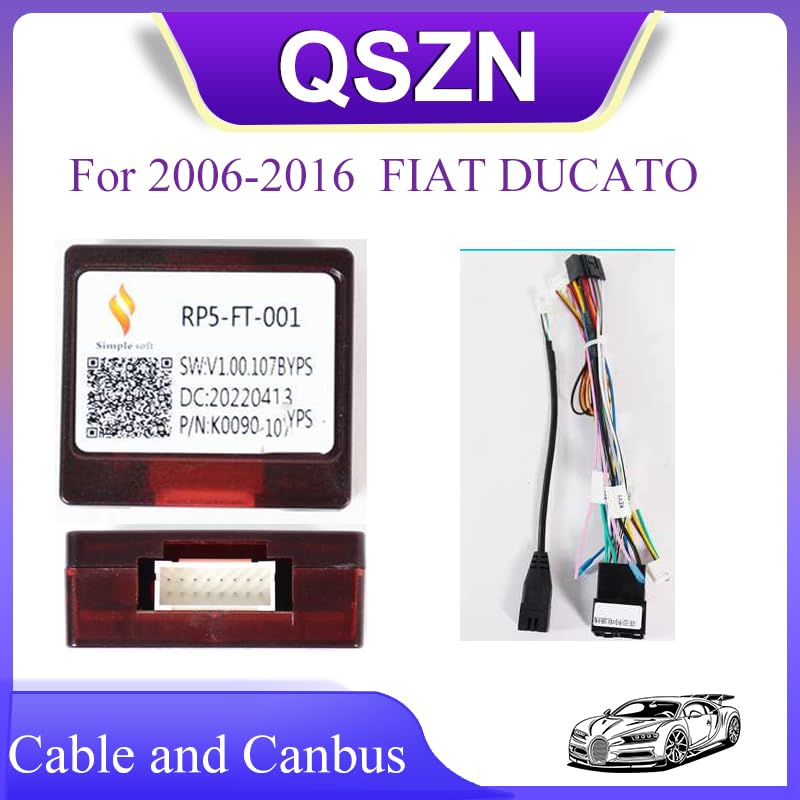 This manual provides essential instructions for the proper installation and use of the QSZN RP5-FT-001/FT-SS-02A Canbus Decoder and 16-pin Wiring Harness. This product is designed to facilitate the installation of an aftermarket car radio in Fiat Ducato vehicles manufactured between 2006 and 2016, ensuring proper communication and power supply.