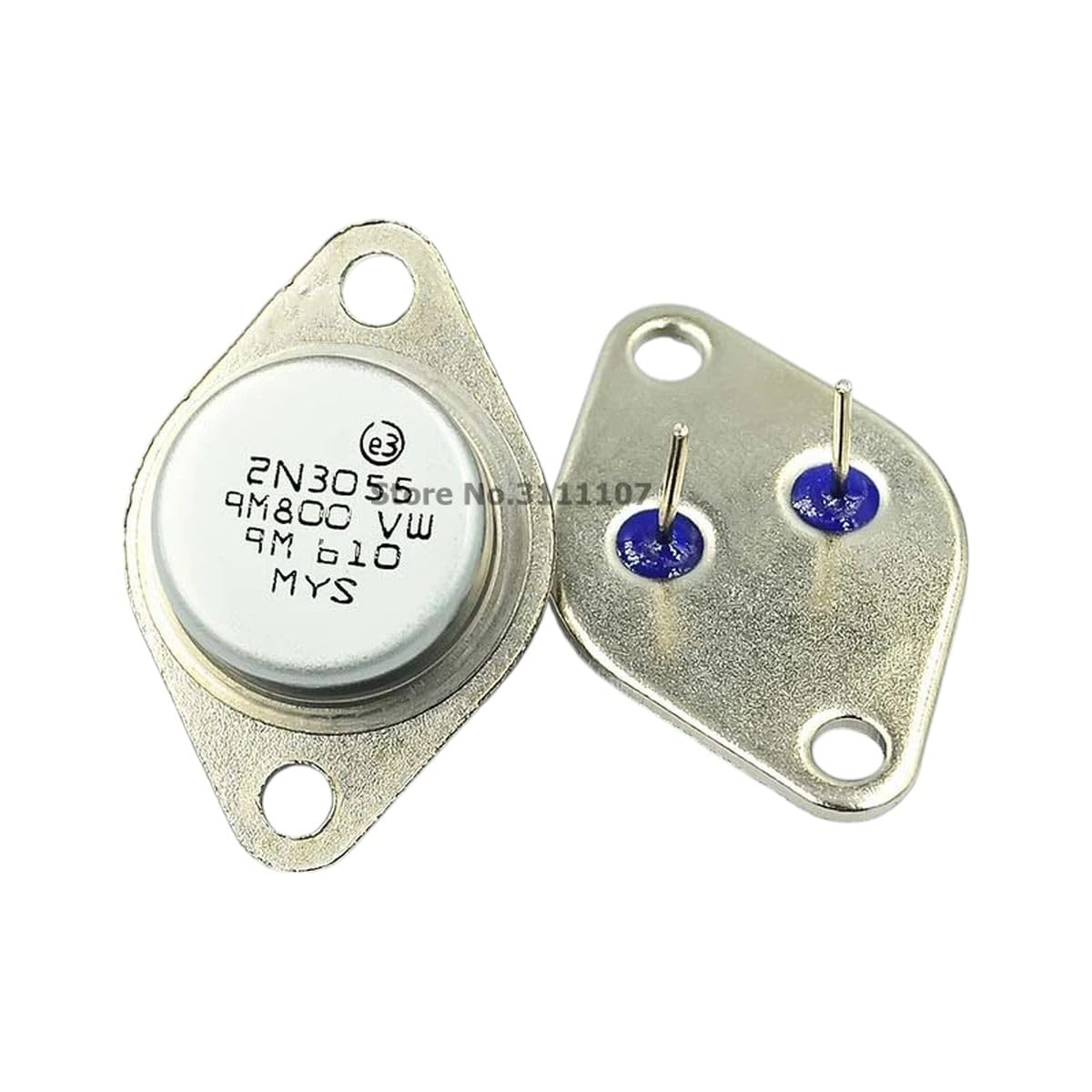 The 2N3055 transistor comes in a TO-3 metal can package, designed for robust power dissipation. Proper heat sinking is crucial for its reliable operation.