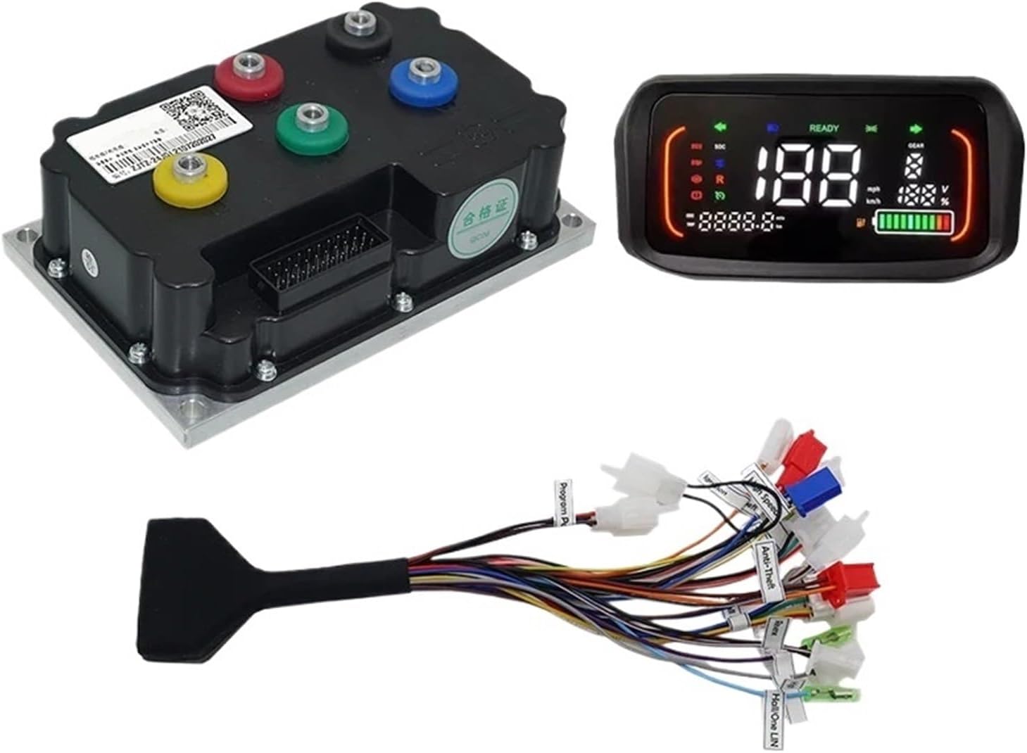 The Fardriver ND72300 Controller Kit includes the main controller unit, an N1S One-LIN display, and a wiring harness. It is designed to manage power delivery to the motor and provide real-time operational data.