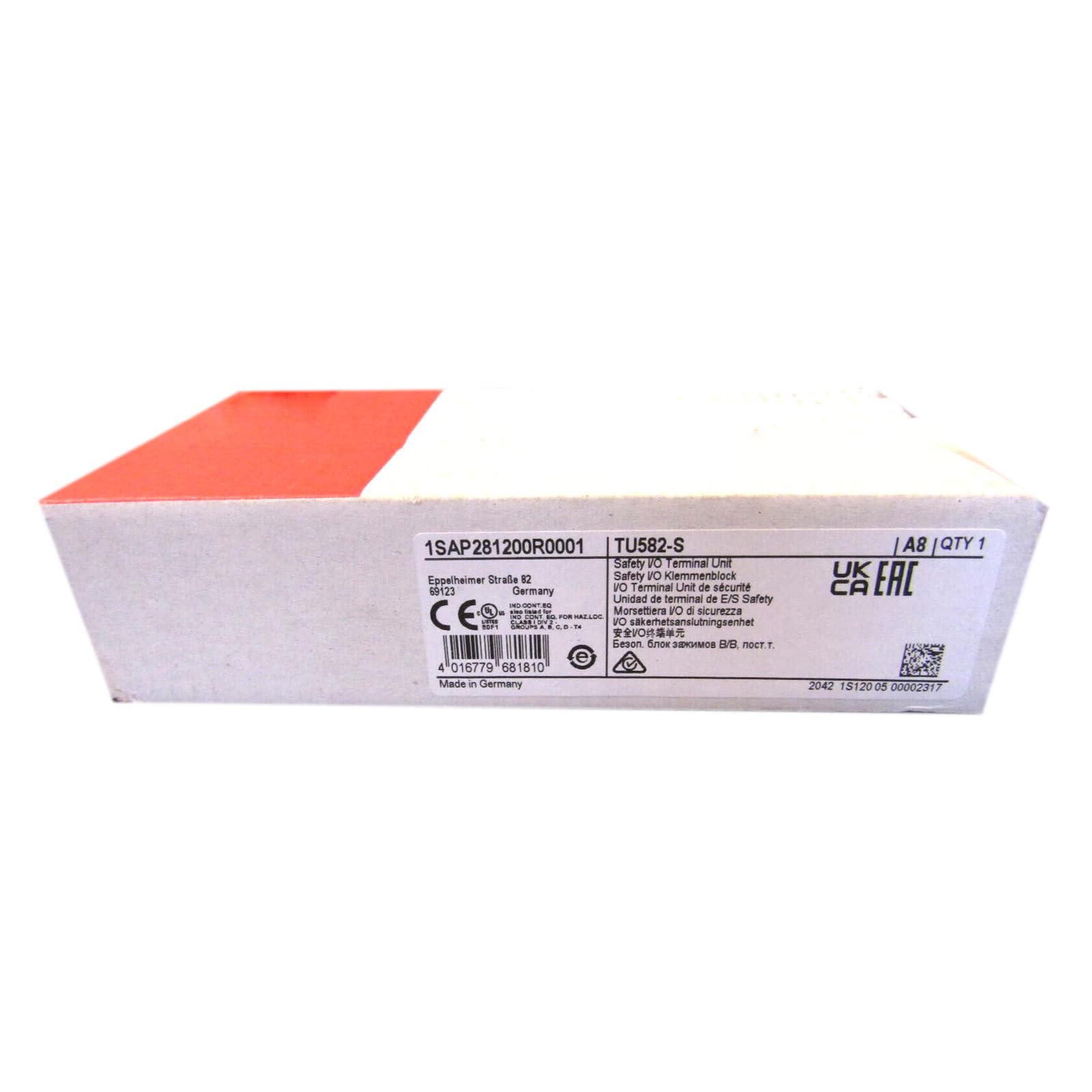 Figure 1: The LRILLMAING TU582-S 1SAP281200R0001 industrial automation product, shown in its sealed packaging.