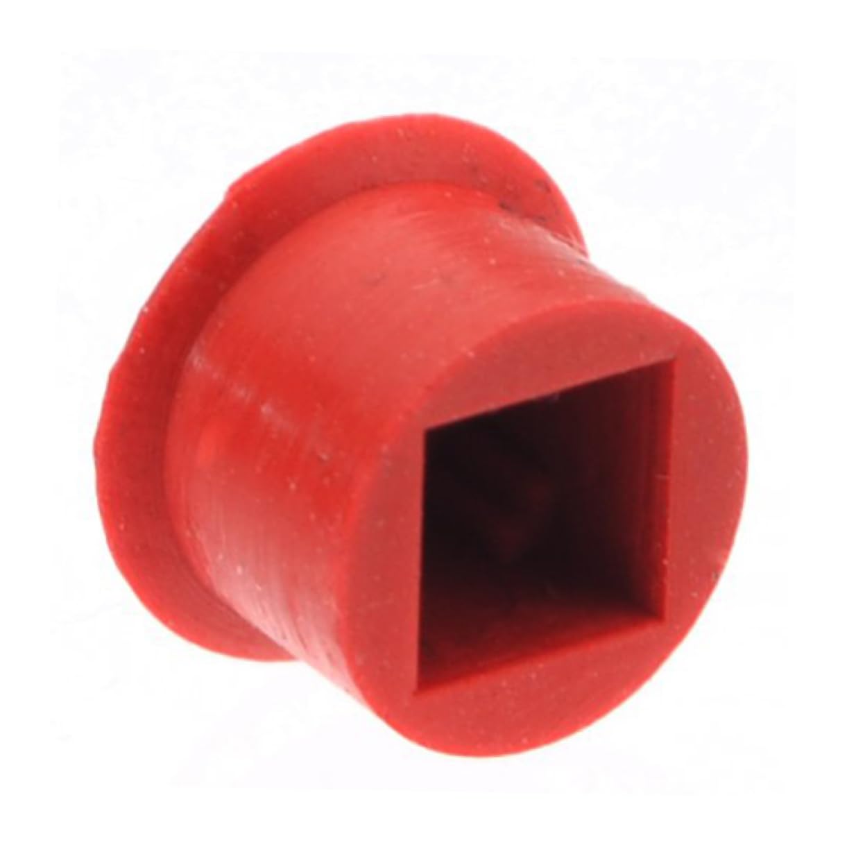 Image: A detailed view of a single TEHAUX Red Mouse Cap, highlighting its textured, dimpled top surface and the circular opening on the underside where it connects to the TrackPoint mechanism.