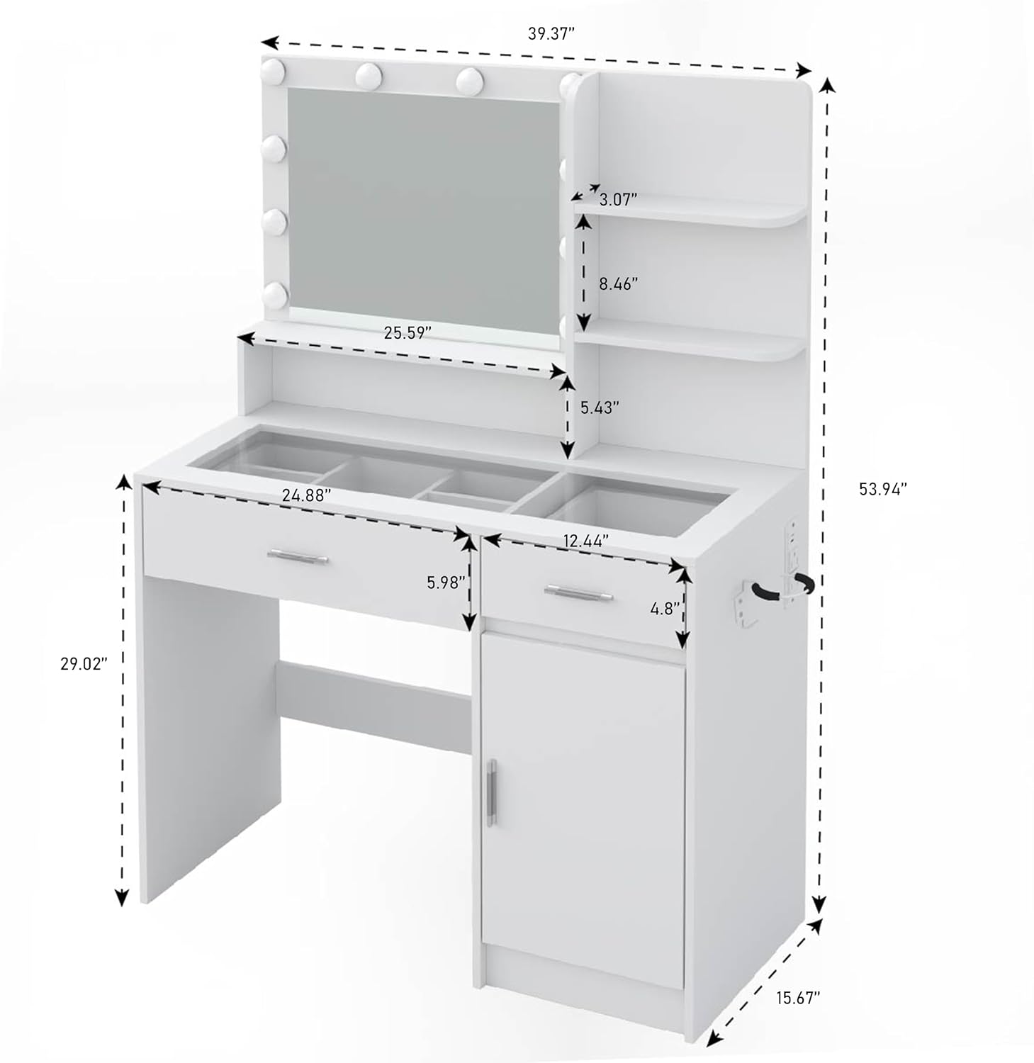 HuaYing HY006-WH White Vanity Desk with Mirror and Lights User Manual