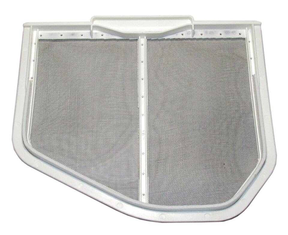 Image 1: Generic Replacement Dryer Lint Screen Filter. This image shows the full view of the white plastic frame with a fine mesh screen, designed to capture lint from a dryer. The filter has a handle at the top for easy removal and insertion.