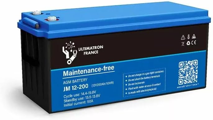 The ULTIMATRON JM-12-200 is an AGM deep cycle battery designed for reliable power delivery over many charge/discharge cycles.