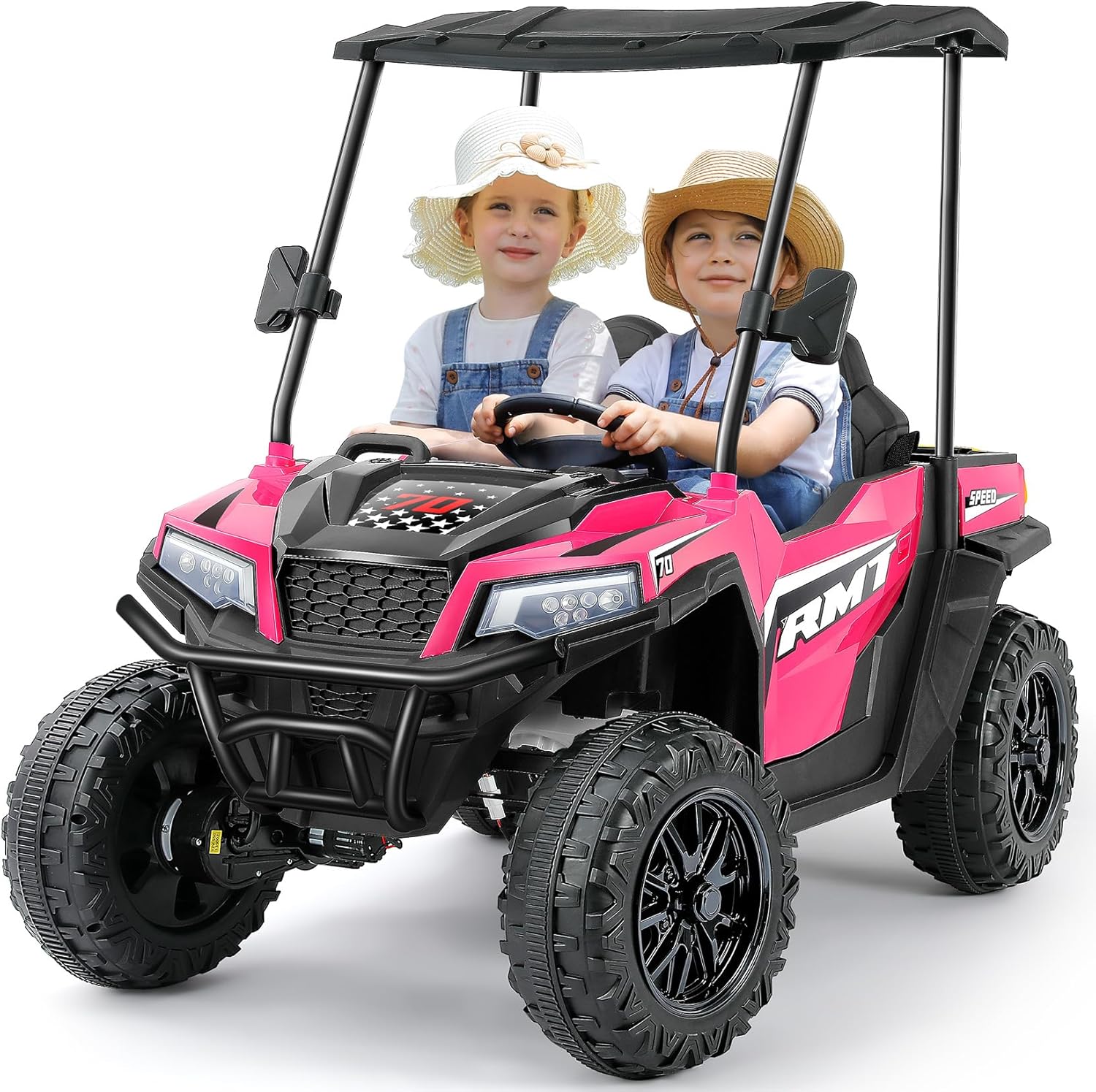 Image: The ELEMARA XB-1038 2-Seater Ride-On Car in pink, featuring two children seated inside, ready for use.