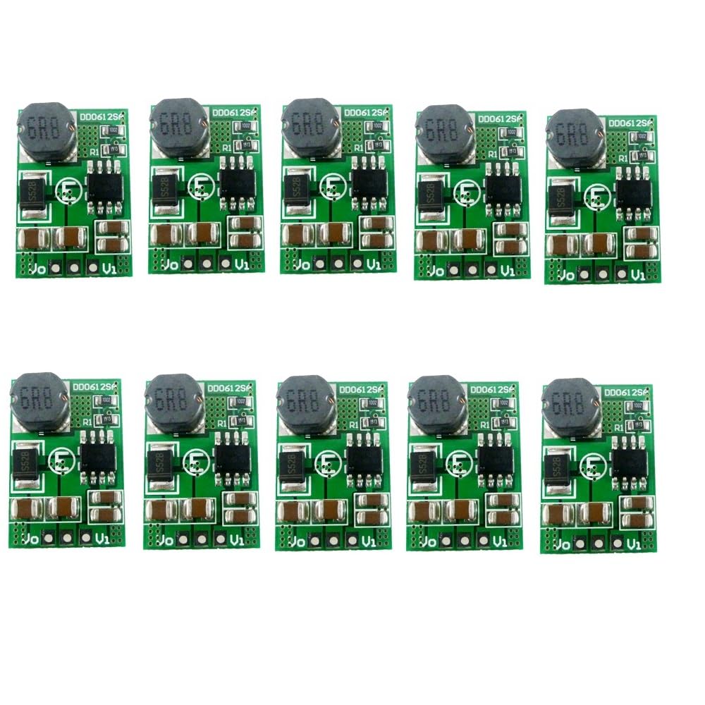Figure 1: A set of ten eletechsup DD0612SA DC-DC boost converter modules. Each module is small, featuring a green circuit board with a prominent black inductor coil and various surface-mount components. This image shows the compact size and quantity of the product.