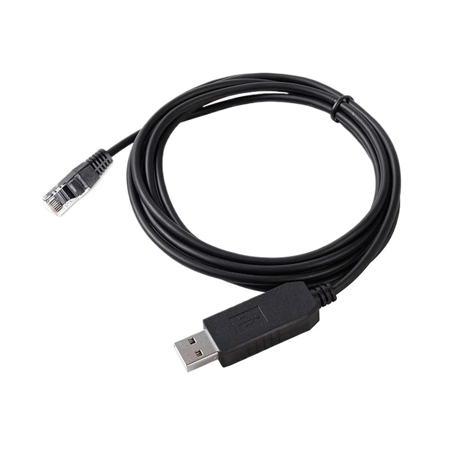 Image 1: The LINGQE USB to RJ45 communication cable, showing both the USB-A connector and the RJ45 8P8C connector.