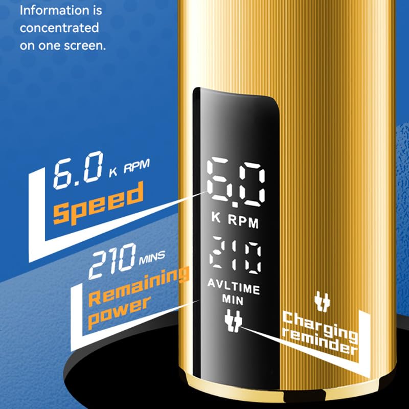 - LCD Display: An intelligent LCD panel provides real-time information such as speed (K RPM), remaining power (minutes), and a charging reminder.