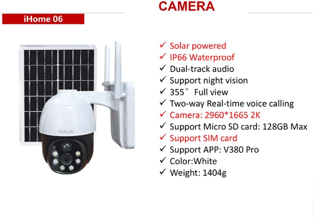 The OALE iHome 06 camera is a robust outdoor surveillance solution. Key features include: