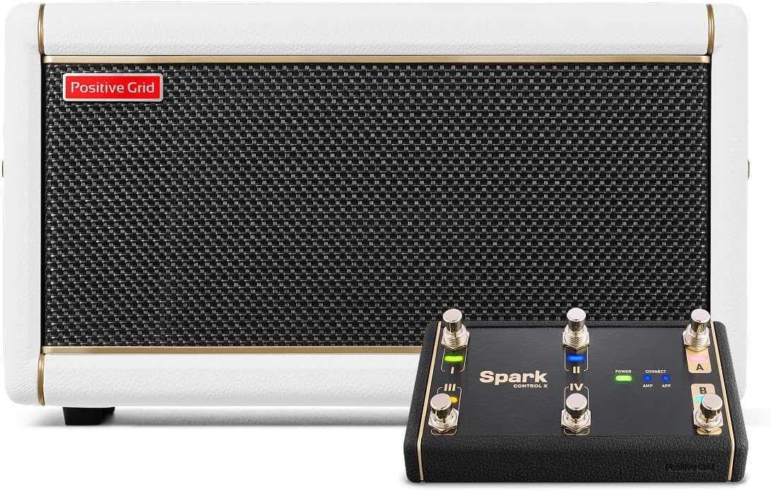 Figure 1: Positive Grid Spark 2 Pearl amplifier and Spark Control X footswitch.