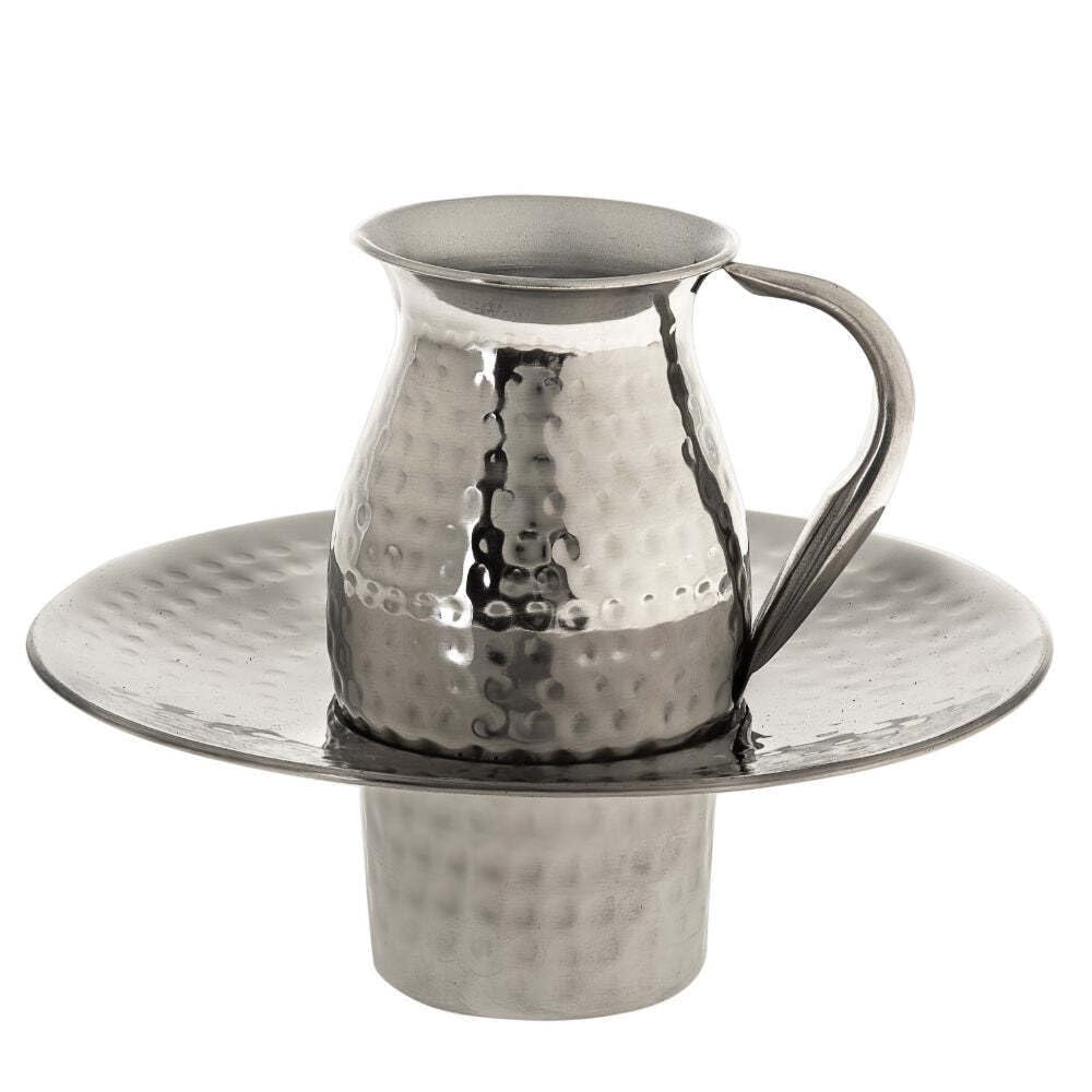 This manual provides instructions for the proper use and care of your FOLIAGE Stainless Steel Mayim Achronim Cup with Tray. This elegant set is designed for the traditional Jewish ritual of Mayim Achronim, the washing of fingertips after a meal. Crafted from durable stainless steel with a hammered finish, it combines functionality with aesthetic appeal for your dining table.