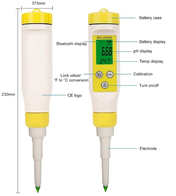 The BLE-PH03A is a professional-grade digital pH meter featuring a clear display, intuitive controls, and a durable electrode. It supports Bluetooth connectivity for data management and offers automatic temperature compensation.
