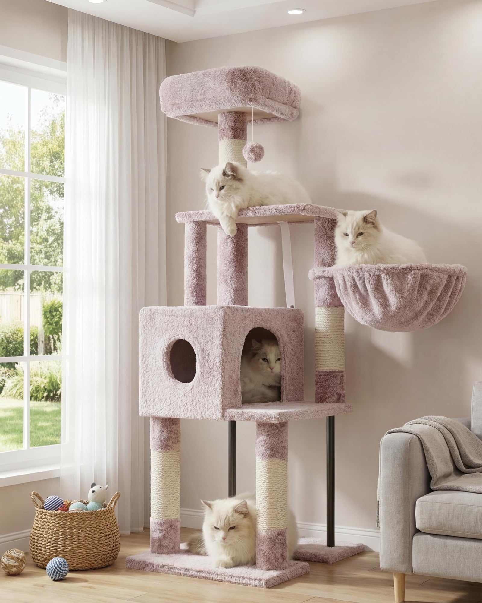 - Scratching Posts: The natural sisal-wrapped posts allow your cat to sharpen their claws, helping to protect your furniture.