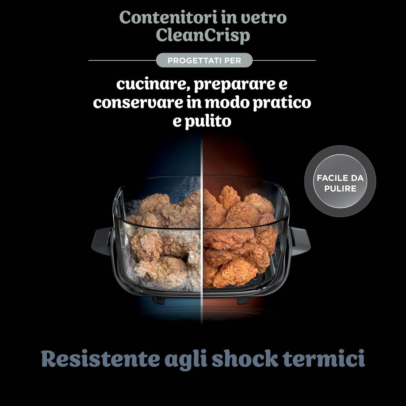 | Special Features | Portable, 4 cooking functions (Air Fry, Roast, Keep Warm, Recrisp), 2 glass containers, 2 non-stick frying plates, 2 storage lids, Dishwasher-safe parts. |