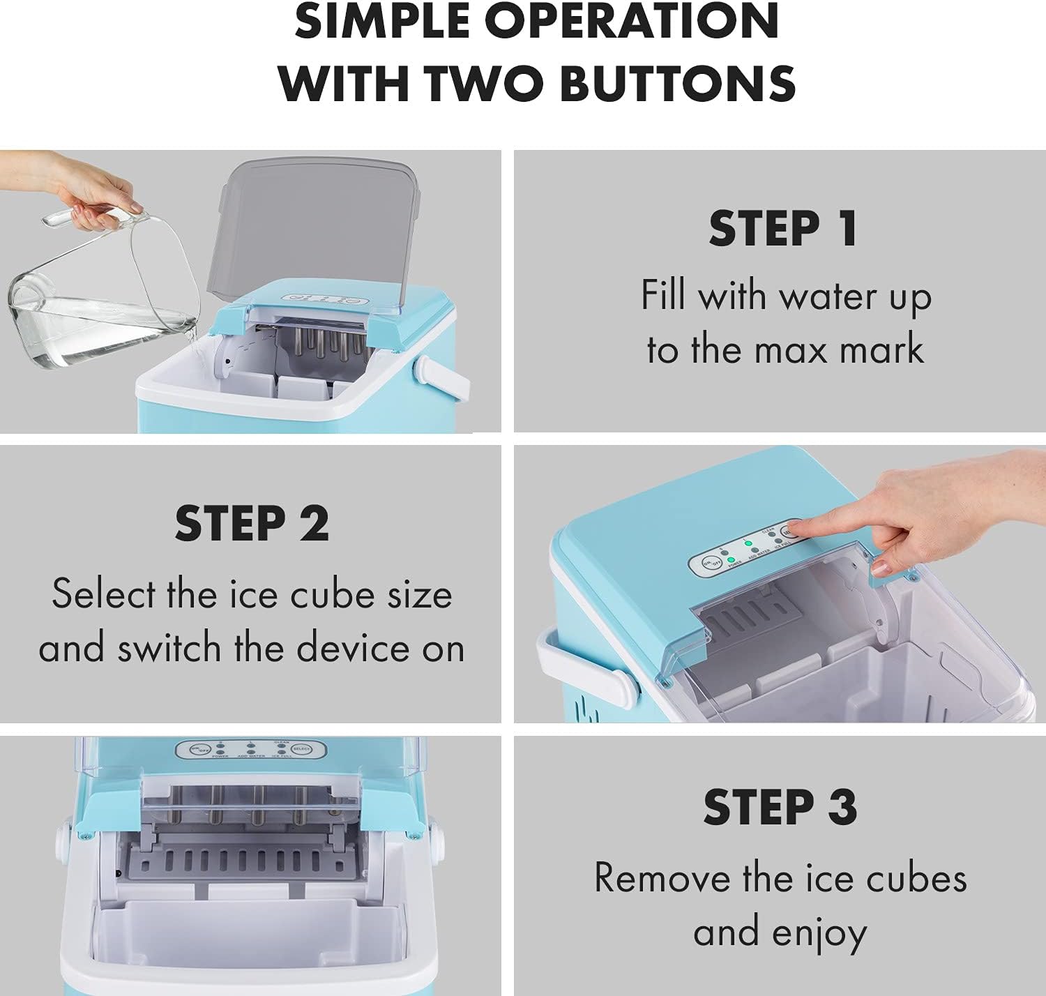 Follow these steps to produce ice cubes with your Klarstein Arctic Porter Ice Cube Maker: