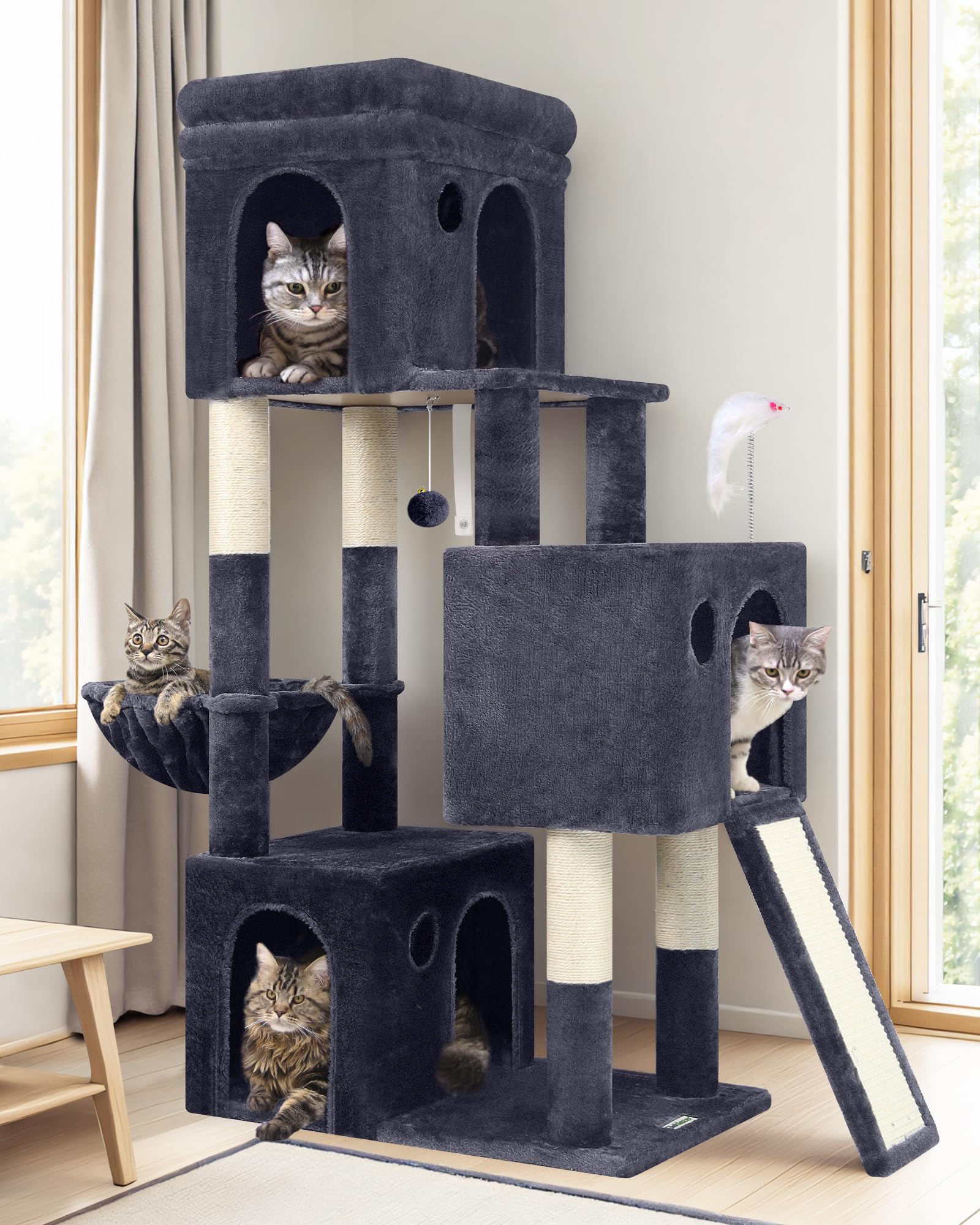 - Scratching Surfaces: Multiple sisal-wrapped posts and a scratching board ladder satisfy your cat's natural urge to scratch, helping to protect your furniture.